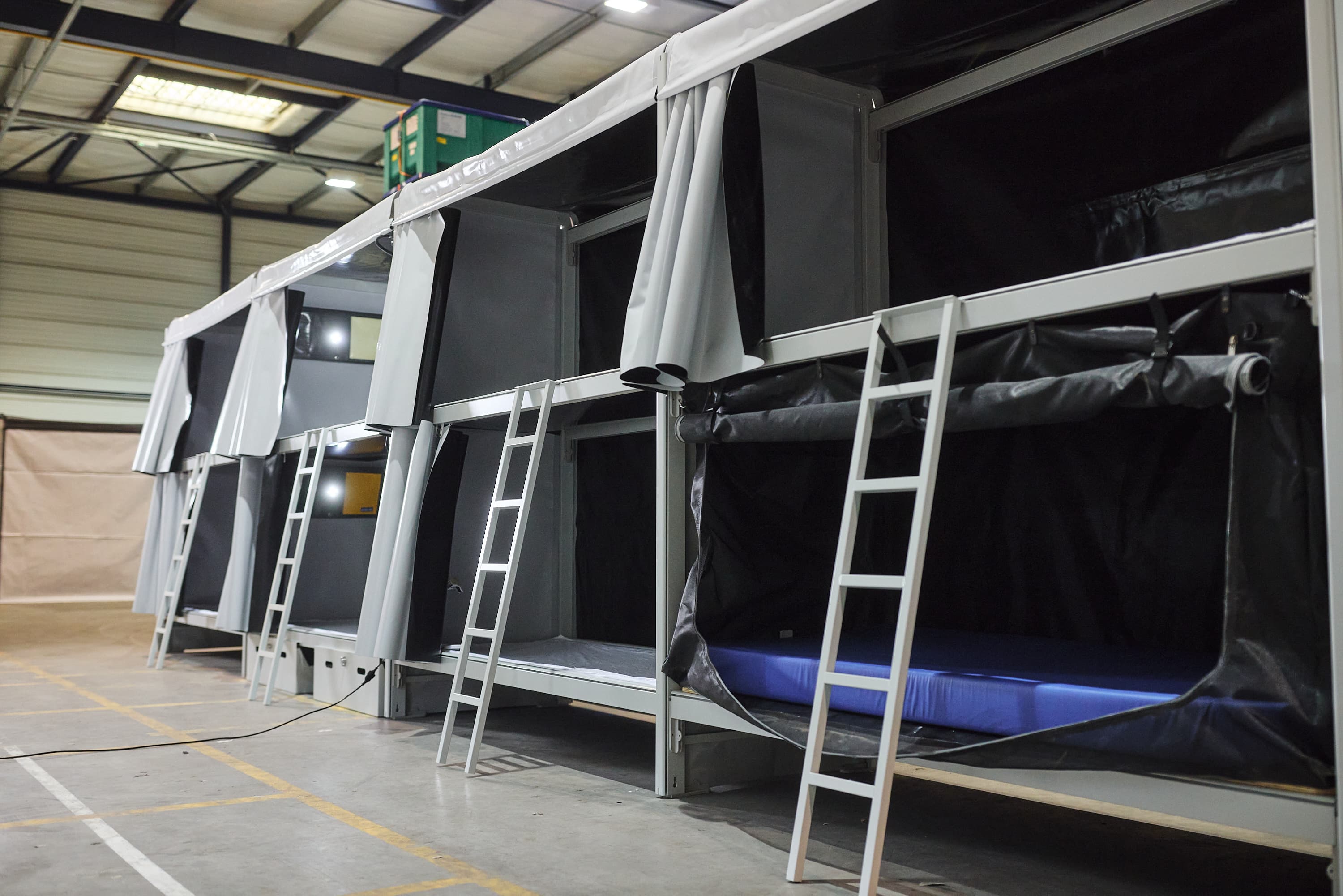 Met Bed-Stay creëer je snel en eenvoudig slaapplaatsen die comfortabel zijn en rust bieden. We hebben een modulair slaapsysteem ontworpen dat perfect is voor veeleisende omgevingen waar snelle inzet van belang is.